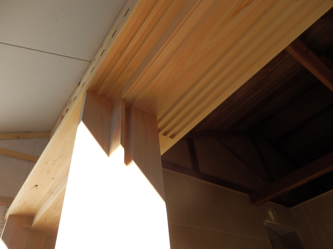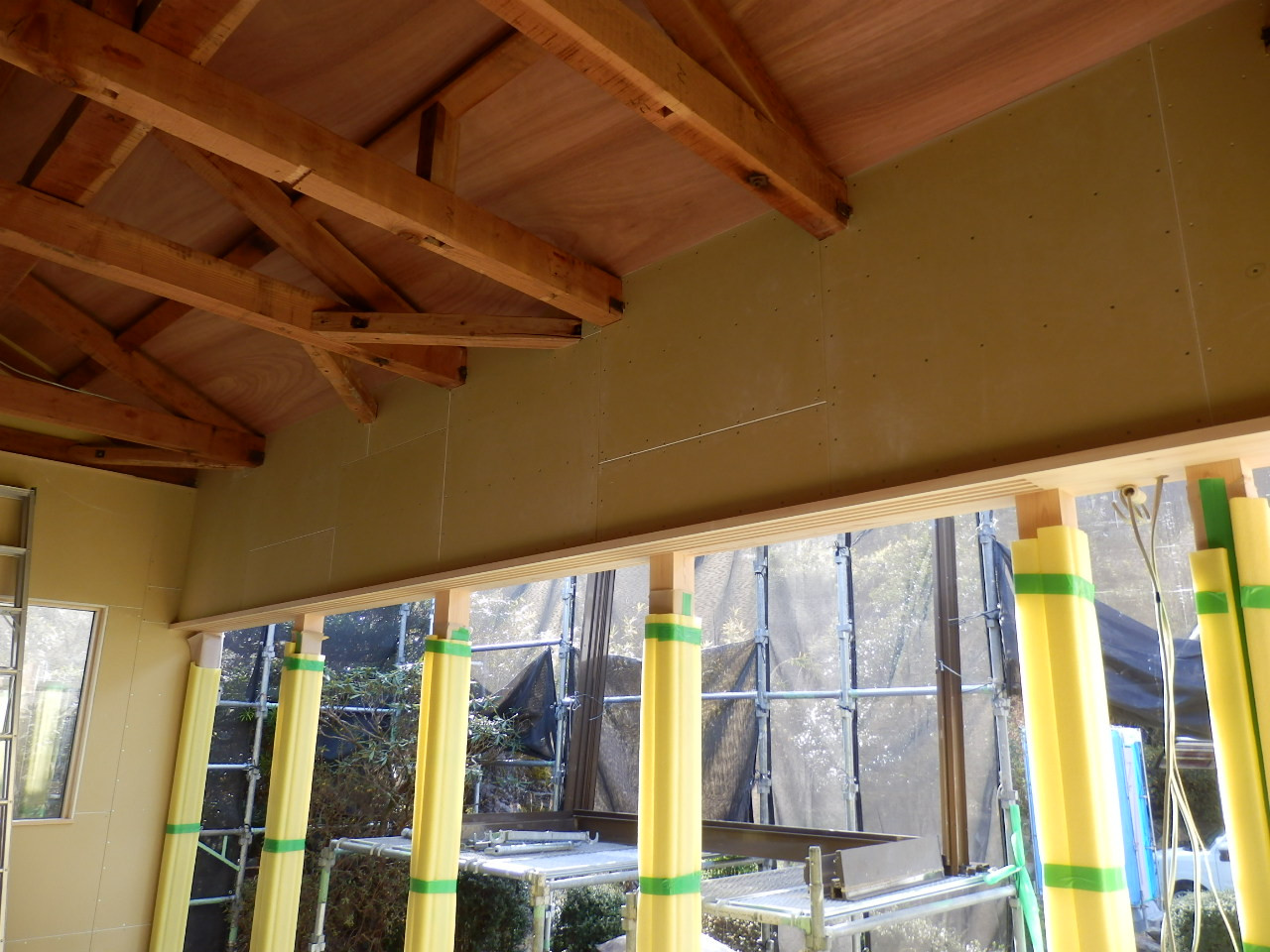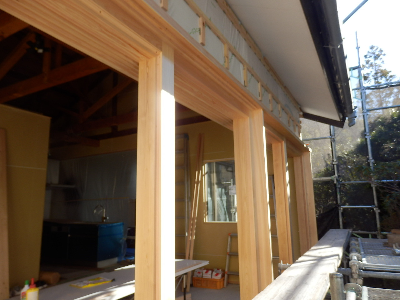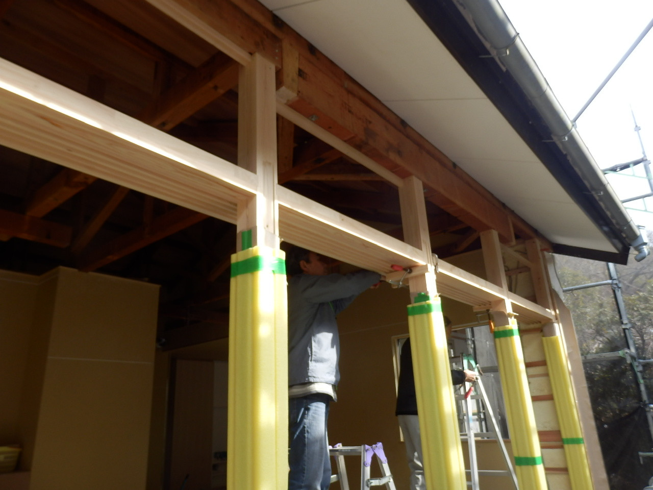 新しい柱と鴨居が施工されました。