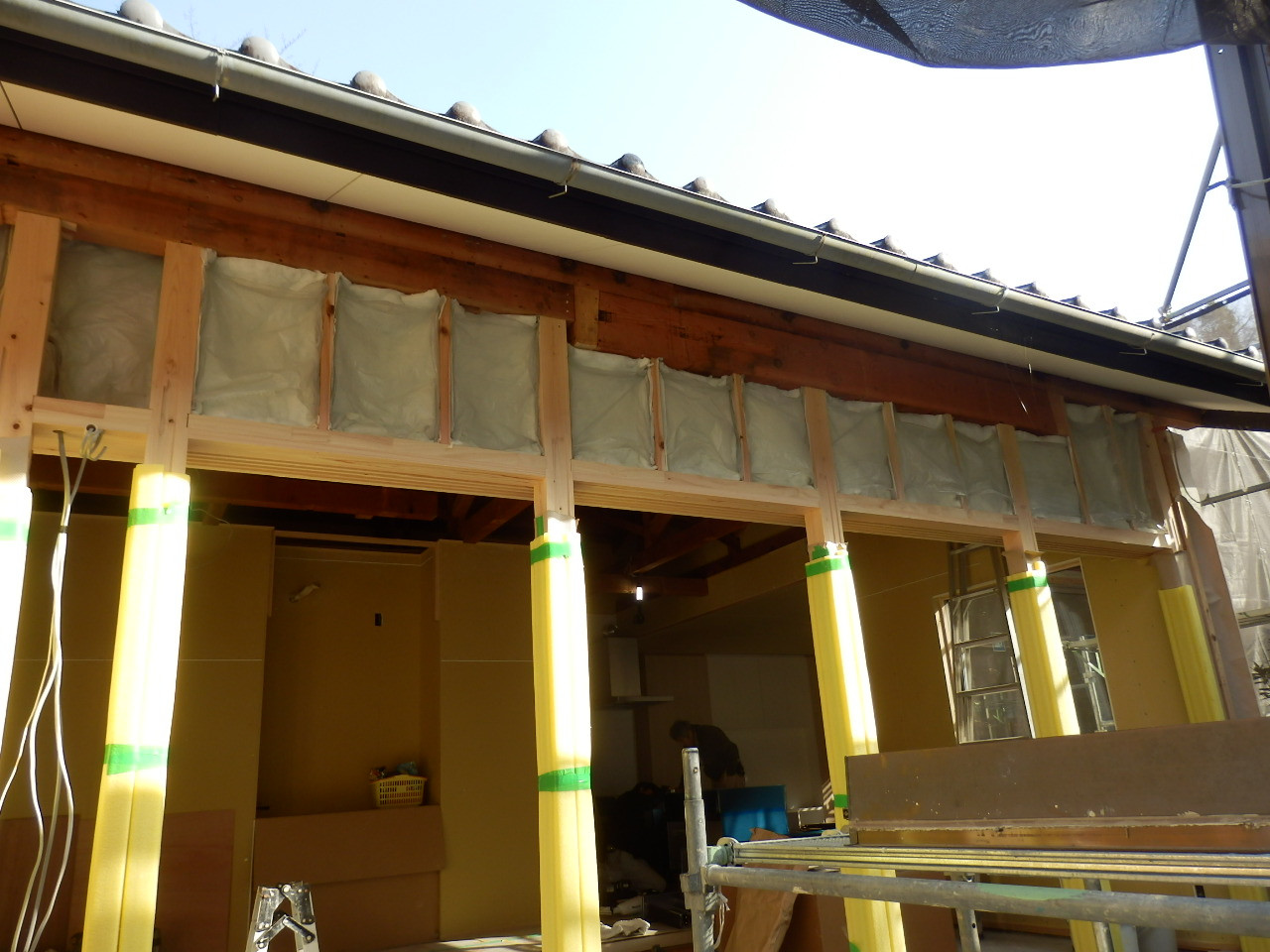 外側からの様子です。断熱材が入っています。