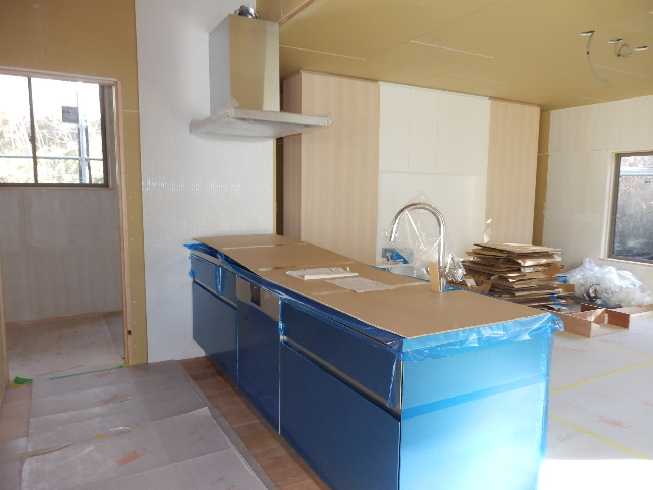 大開口部を和木家工房が行っている間に、家の中ではキッチンが組み立てられたり、