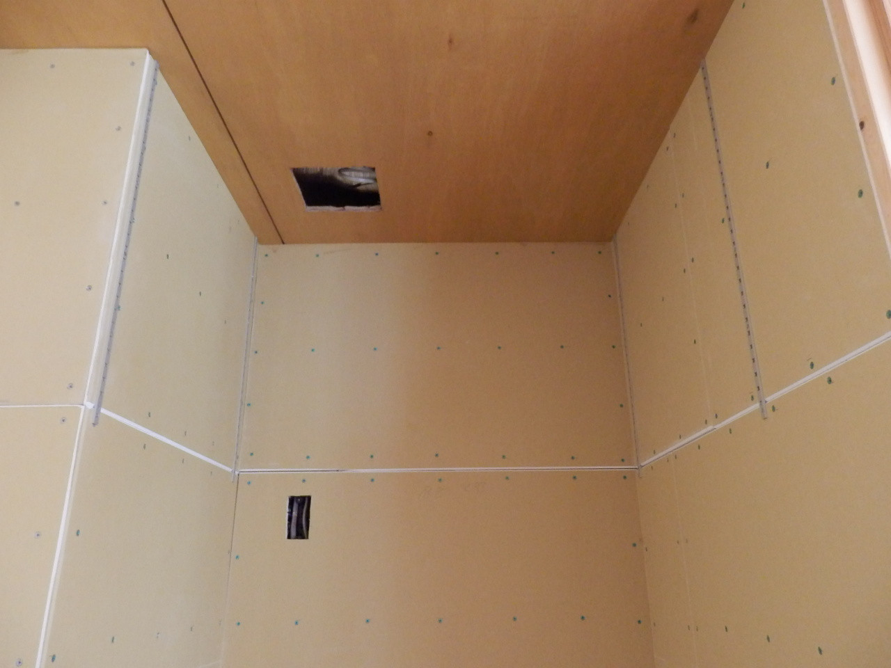 この写真は、冷蔵庫を入れるスペースの上部の空間に可動棚をつけるために、