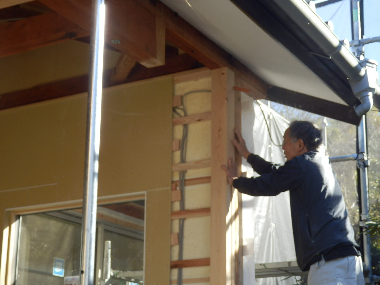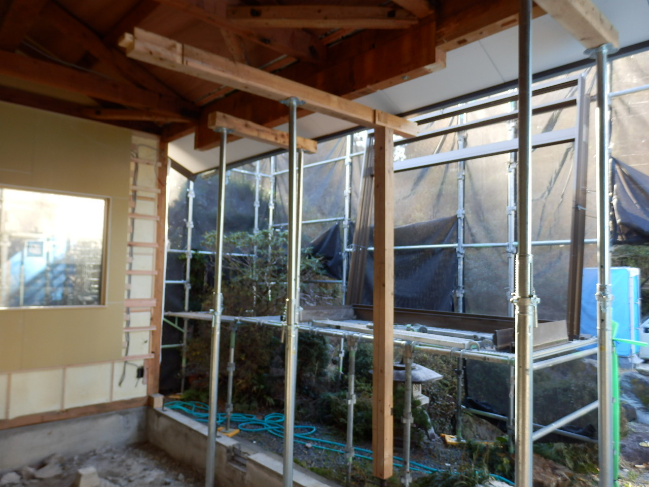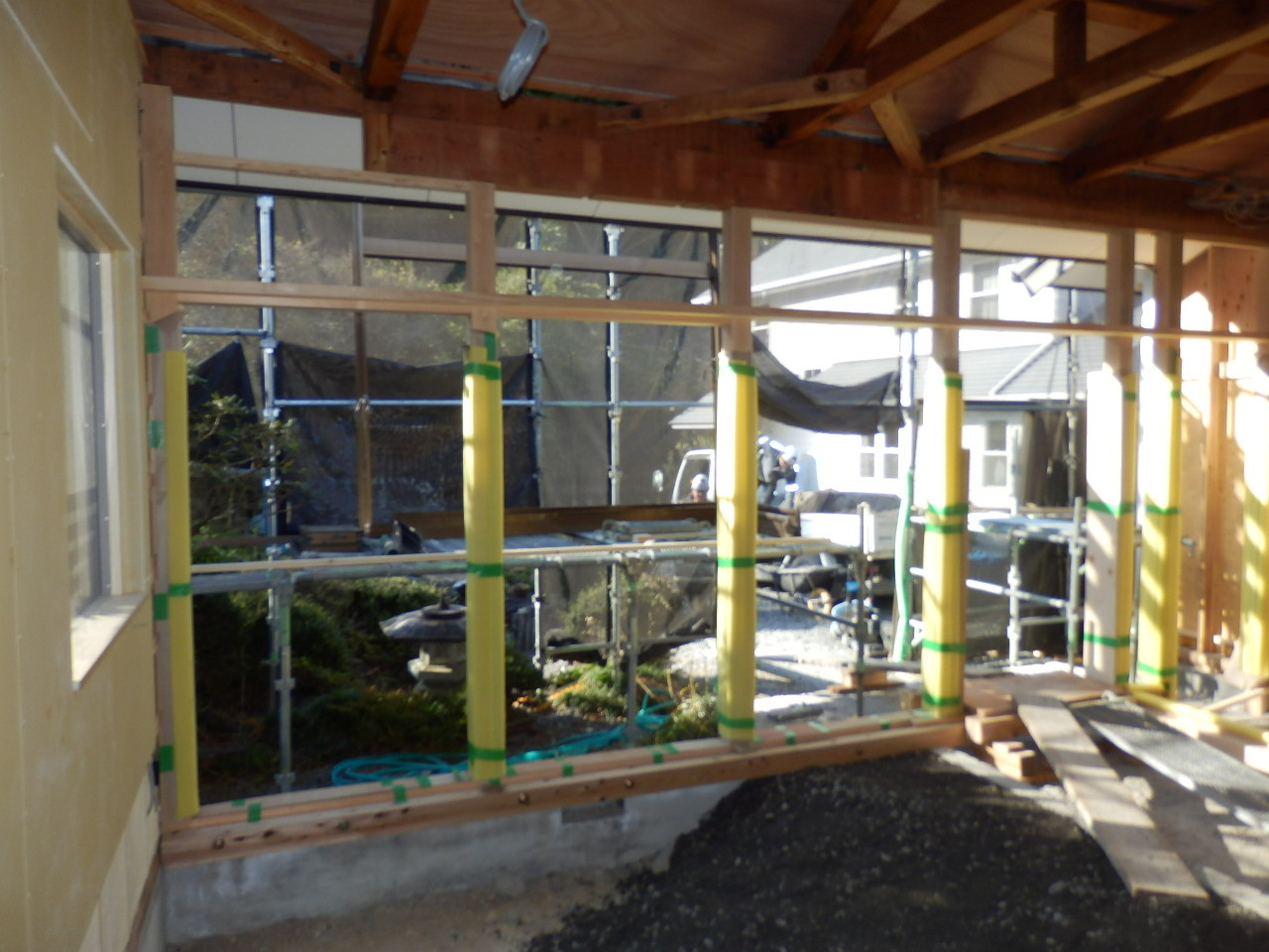 新しい柱と鴨居が施工されました。
