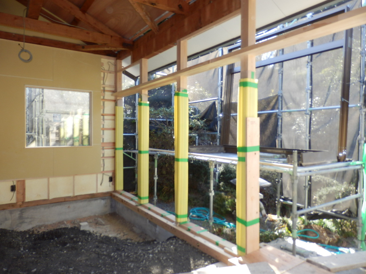 柱も設置後すぐに養生です!