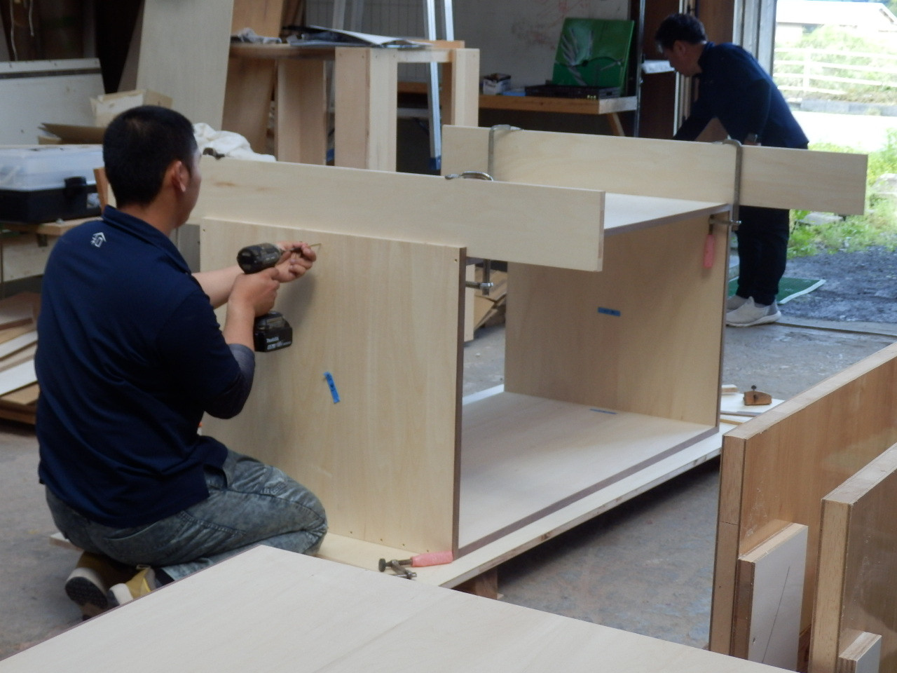 今回は大型の家具なので、パーツを作っては第二倉庫へと運び入れている状況です。